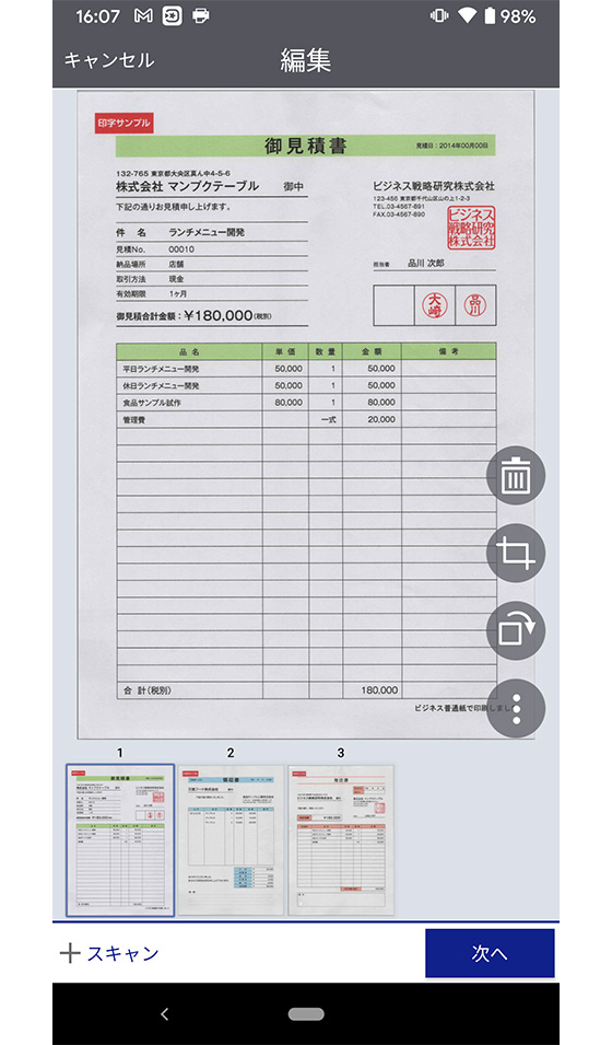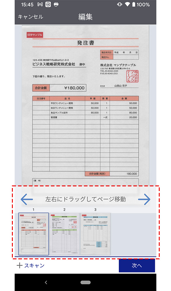 PCを介さずに直接スキャンデータをスマートデバイスに転送可能。紙資料をスマートフォンやダブレット端末に入れて外出先で閲覧したり、クラウドにデータを転送したりできます。