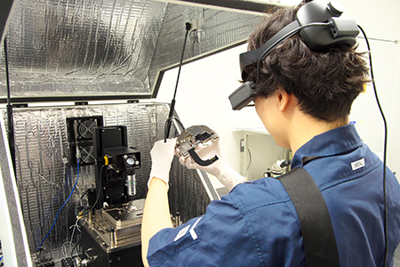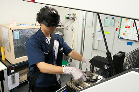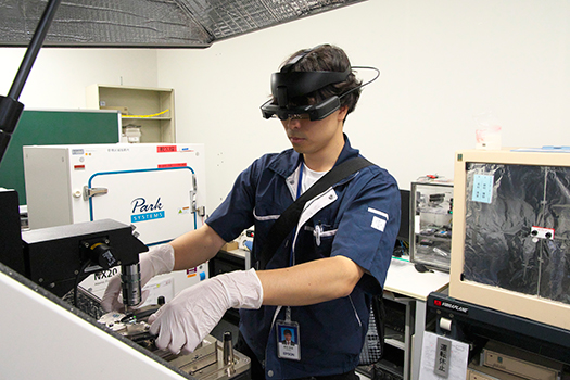 セイコーエプソン富士見事業所の技術開発本部分析CAEセンターでは、同社の試作品や製品、場合によっては故障した製品の検査や分析の依頼を各拠点から受けて実施する部署だ。その検査や分析にはさまざまな分析装置が用いられるが、特殊なものも多く、装置を扱う業者からアドバイスを受けるケースも少なくない。とはいえ、それには時間もコストもかかり、業者側の負担も増やしてしまう。そこで、スマートグラスを用い、オンラインで映像を見ながらアドバイスを受けることで、時間やコストを低減させる取り組みが行われているという。同部署で分析技術の開発を行う青木さんにお話を伺った。