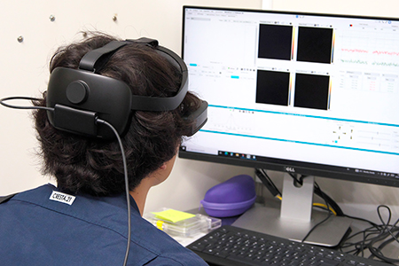 BT-45Cは視野がクリアなだけでなく、映像表示も明るく高精細なため、先方にどのような映像が送られているかも分かりやすいとのこと。このほか、周囲に要機密保持の装置などが置かれているケースでは、オンラインであれば周囲を見られる心配がないというメリットもあるという。