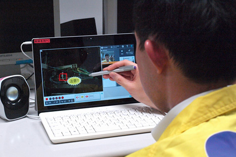 現地技術者の見ているものが分かり、文字や図形で注意を促す。