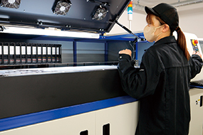 新規の小ロット・短納期のジョブを中心にサイズの大きなステッカーや発色の良さを求められるジョブなどを担当しています。