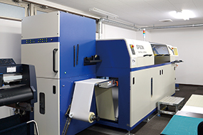 SurePressを中心にプロッター、ラミネーターなどを揃えデジタルフローでラベルを生産する部署。