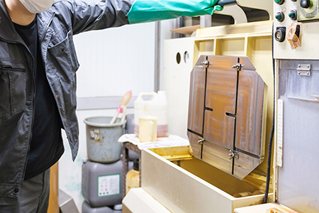 父が製版会社から独立してラベル印刷機の製版業で起業しました。旧式の製版機1台から生産を始め、お客様の要求に応えるために、機器を追加・入れ替えしながら現在は大日本スクリーンのCTPとイメージセッターを1台ずつ使って版を製造しています。版の種類では間欠輪転機用、平圧用の亜鉛版、オフセット印刷用の版を製造しています。間欠輪転機用の版が8割程度となっています。2割程度は平圧機で使う亜鉛版です。平圧機はメーカーも製造を中止し、稼働している台数もどんどん減少しています。また、亜鉛板は国内製造が終了してしまい、韓国・中国からの輸入品に頼っています。調達が難しく、材料費も高騰しており同業でも亜鉛版製造をやめてしまうところが多く、関東エリアでは当社を含め数社しか残っていません。当社はお客様が困らないように製造を継続します。