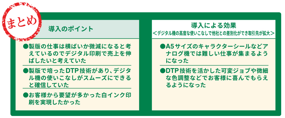 将来製版の仕事が微減になることを見越し、製版以外の売上を伸ばす為にデジタル機を導入。