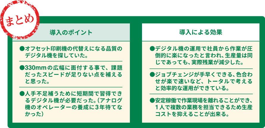 導入しているデジタル機も多く、使いこなしのノウハウが強みになって生産能力は向上しました。