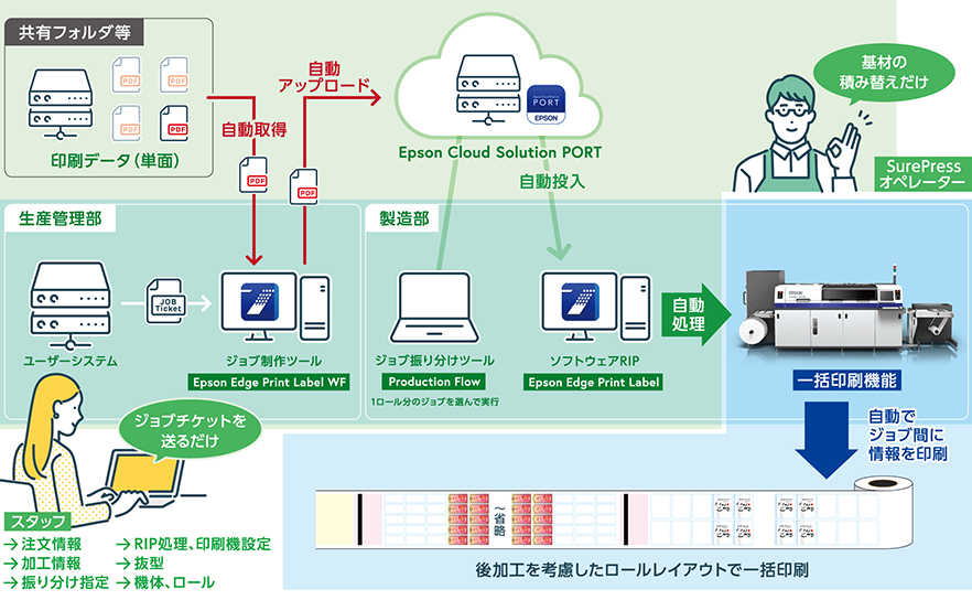 「Epson Workflow Cloud for SurePress」は、2つのワークフローで「省人化」と「スキルレス」を実現。