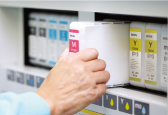 メンテナンス性にも優れ、作業時間や工数を最小限にとどめながら高品質な印刷を実現します。また、カートリッジ式のインクのため、印刷機の生産中にインクを交換することも可能です。