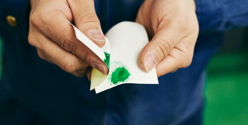 金光氏: 今、丸紀印刷には調色ができるオペレーターが5~6人います。一人前になるまでの期間は、その人次第ですね。3カ月で習得できる人もいれば、数年かかってもできない人もいます。
