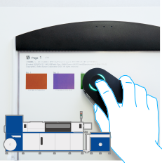 測色計を使い、わずか3ステップ、約8分で特色の色合わせが完了。