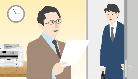 3出張先の拠点に到着後、既に資料が印刷されているので、予定通り会議が可能に。