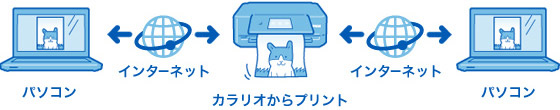 自分のパソコンにつながっているカラリオと同じ感覚で、遠くのカラリオでプリントできます。