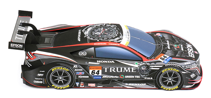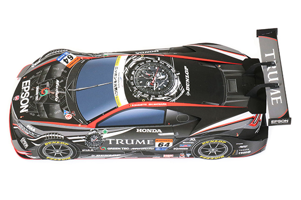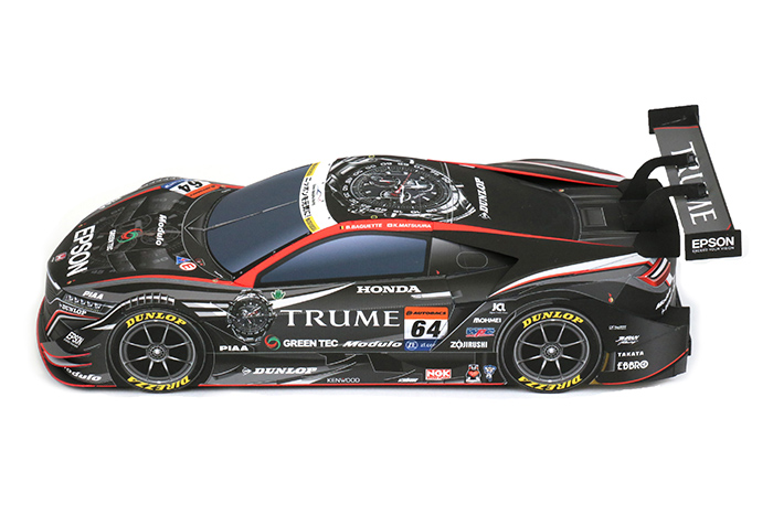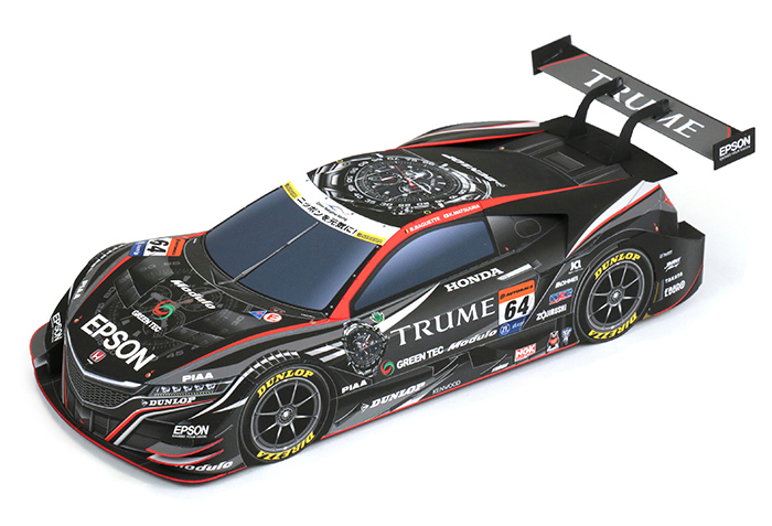 エプソンのアナログウオッチ新ブランド「TRUME」(トゥルーム)の発売を記念し、2017年11月のSUPER GT第8戦限定で登場したスペシャルデザインのNSX-GT。黒をベースに赤の差し色でTRUMEの世界観を表現。