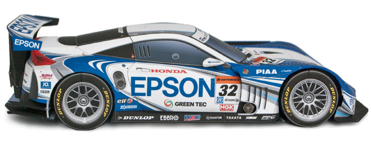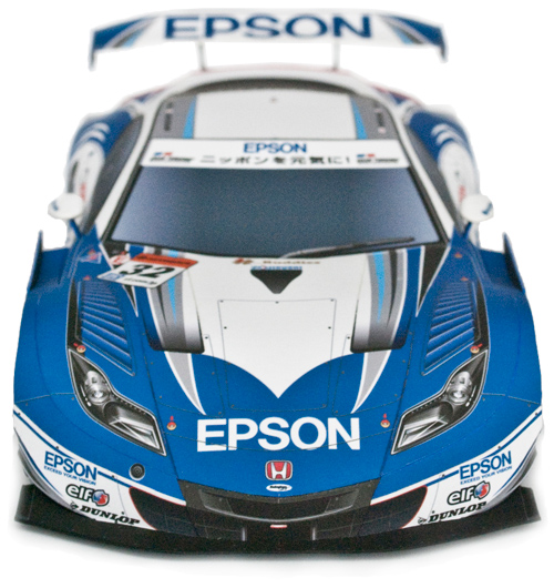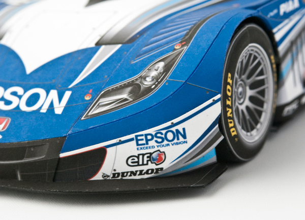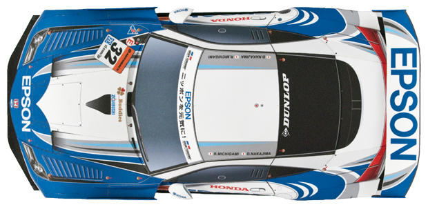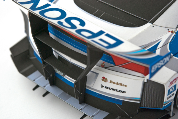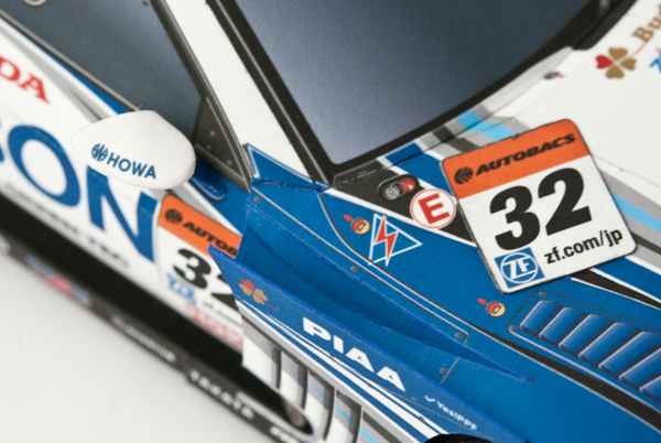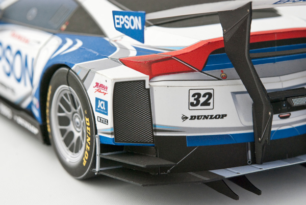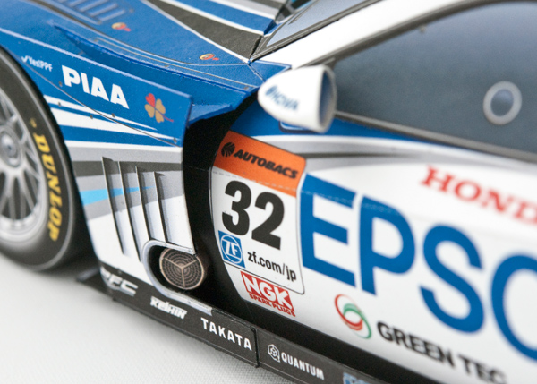 ブルーを基調とした繊細なラインが随所に表現されている2013 Epson HSV-010 GT上級版。SUPER GT第2戦富士500Kmレースから変更となったエキゾーストも、精緻に再現されている。