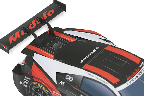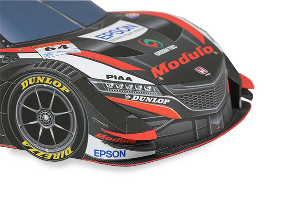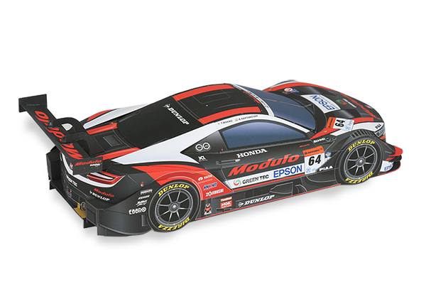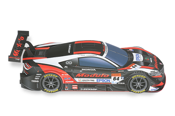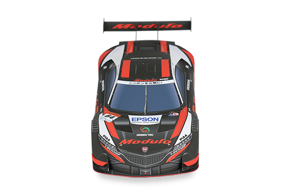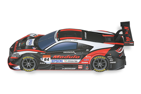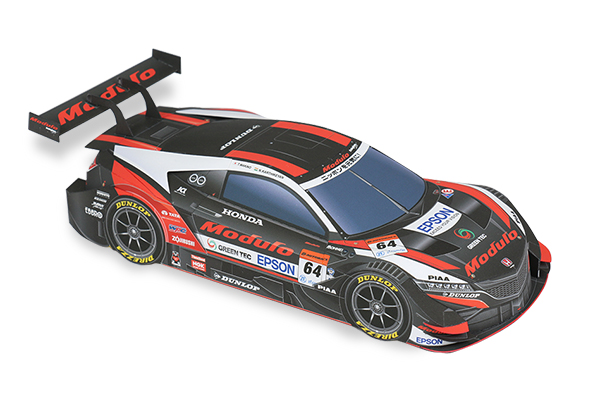 従来の白地とブルーを基調としたカラーリングからブラックとレッドをベースにした精悍なカラーリングデザインへと変貌を遂げた「2019 Epson Modulo NSX-GT初級版」です。