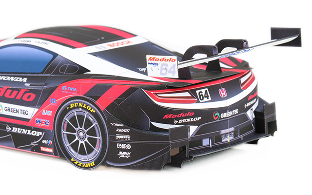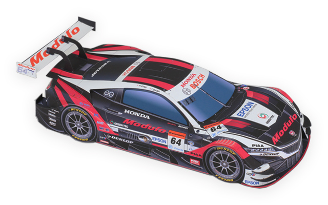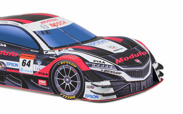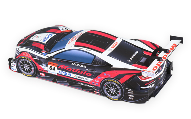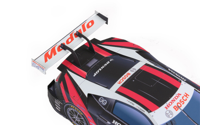 これまでのミッドシップからFRへと大きく変貌をとげた新NSX-GT。ブラックとレッドをベースとした精悍なカラーリングデザインが目をひきます。初級版ながら作りごたえのあるペーパークラフトにぜひ挑戦してください。