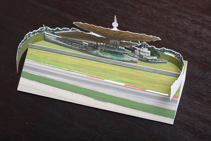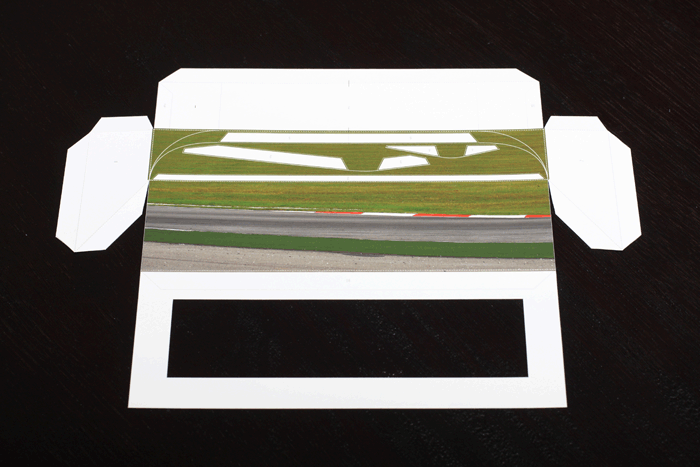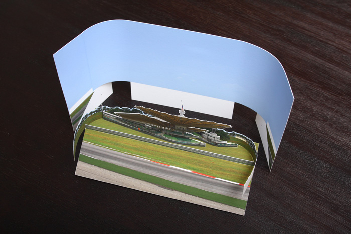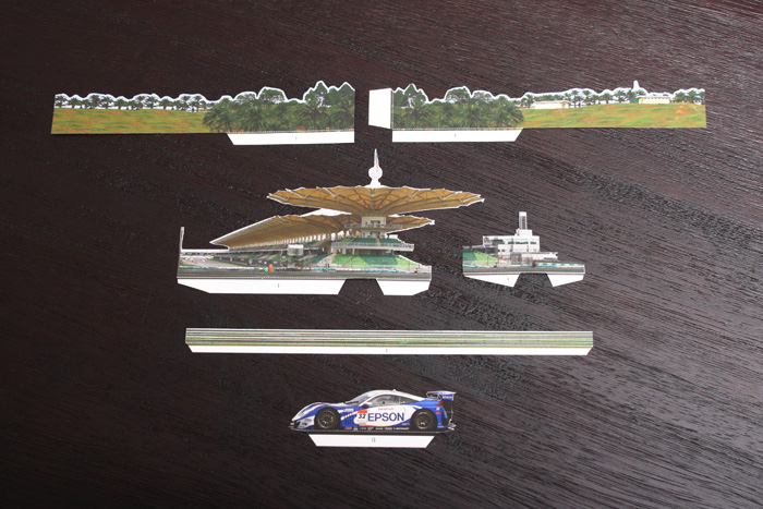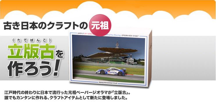 「立版古」はペーパークラフトとしてはカンタンな部類に入るので、紙とのりになれるのによいアイテムです。手軽に作って飾ってもらえたらと思います。さらに自分の愛車を撮影してHSVと並べて走らせると、より面白くなると思います。