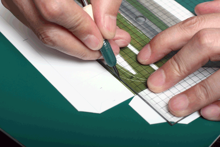 | 3.定規 | 切るだけでなく、まっすぐな折り目をつけたり、平面に丸みをつけるときに使います。 |