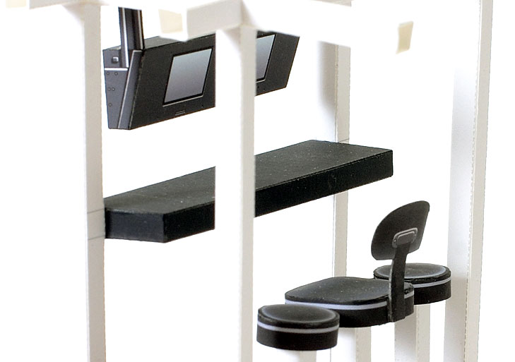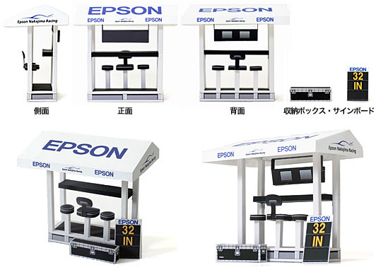 レース時に中嶋 悟総監督がドライバーに指示を出している場所。コンクリートウォールと合わせて作り、内側に設置すれば完成。ドライバーに指示を出すサインボードも付いている。