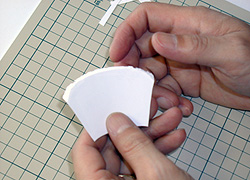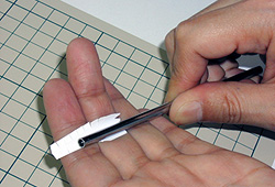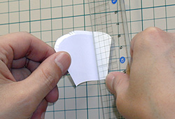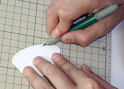 ある程度大きめのパーツに緩やかなRを付ける場合は、定規で紙を抑えながら紙をひっぱるようにしてしごくと、簡単にRを付けることができます。 |