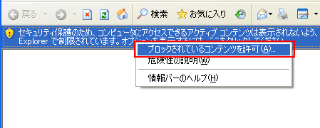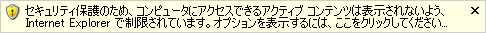 「まっぷっぷ」で作成した動画地図をウェブブラウザで表示する際に、以下のメッセージが Internet Explorer のツールバーに表示され、処理が継続できません。![]() 回避方法 以下の操作手順で処理を続行させます。